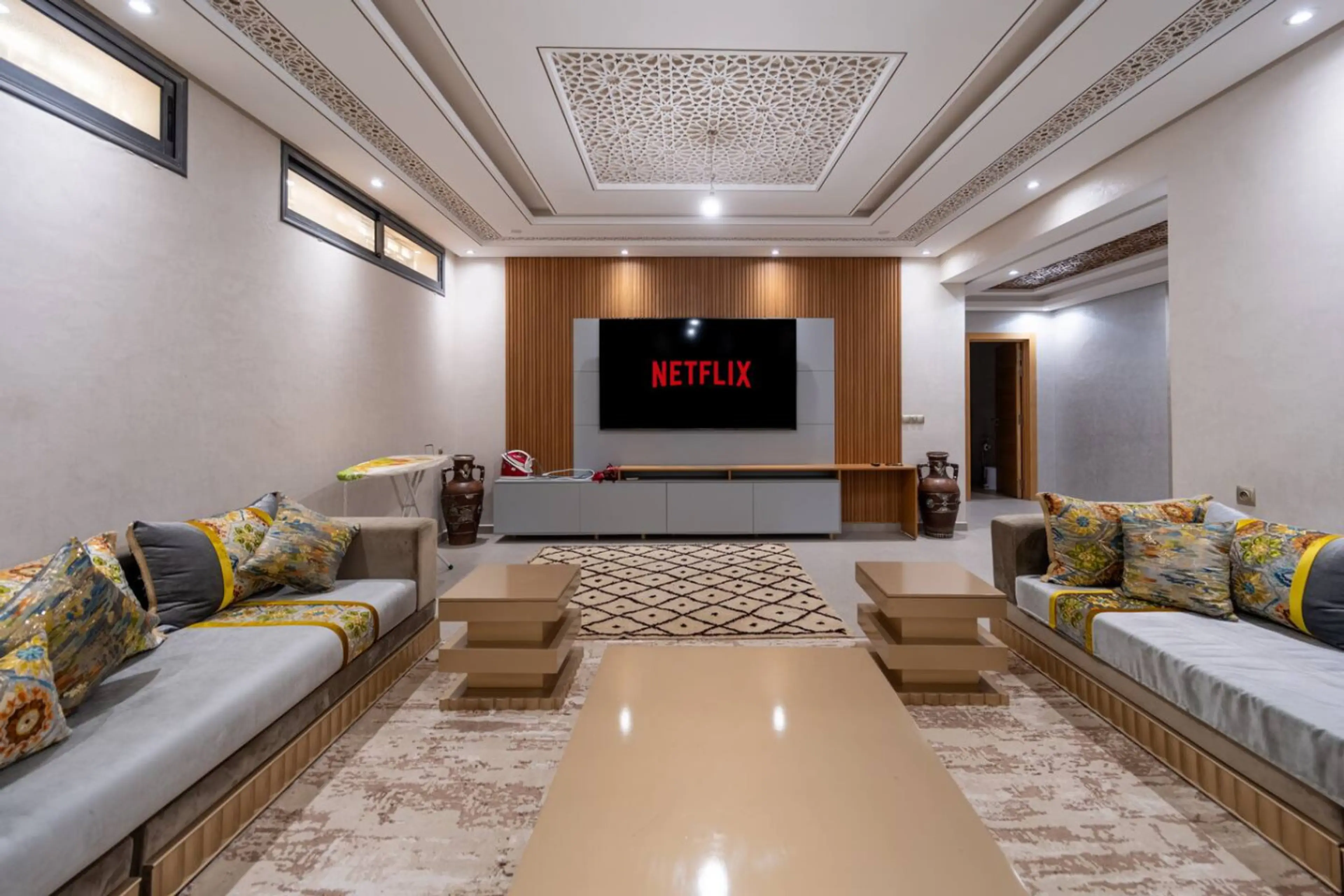 Villa pour 8 personnes mêlant modernité chic marocain. Profitez d’une piscine privée, d’un hammam traditionnel et d’espaces lumineux au style authentique et épuré. À seulement quelques minutes du centre de Marrakech, cette villa allie confort, détente et ambiance marocaine raffinée.